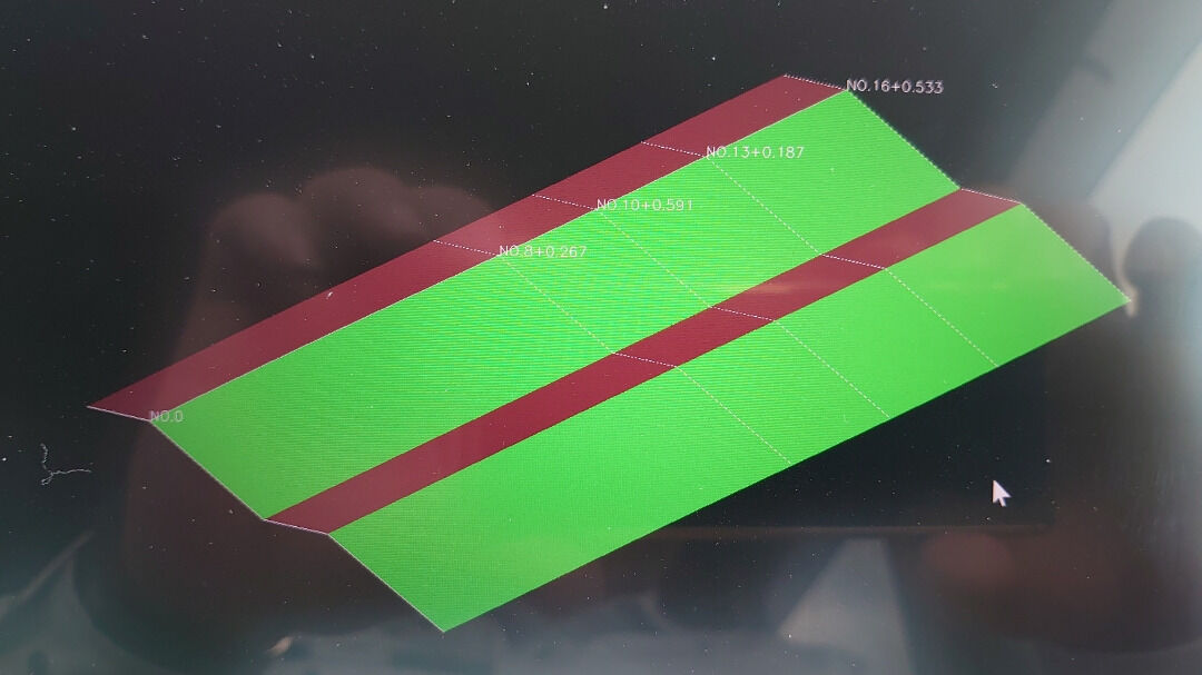 それは〜どこでも丁張りを使い、現地盤での法肩の位置を出す事で余盛が現状幾らの幅があるのかチェック出来ます。
