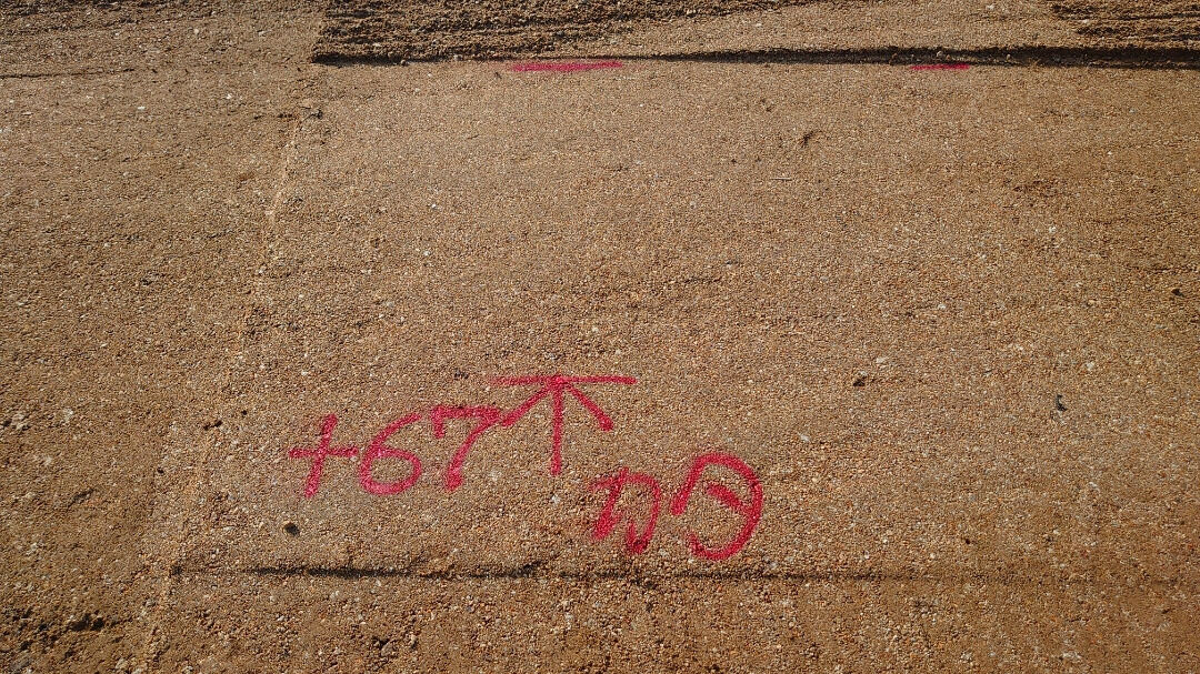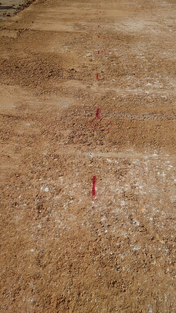 ちと分かりにくいですが、手前のスプレーの位置が盛土完了時の法肩の位置!あと67センチもらないと駄目です。